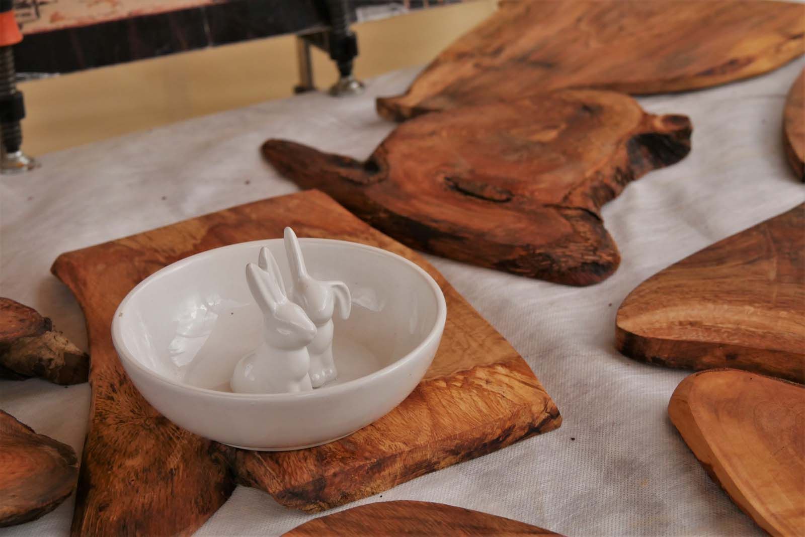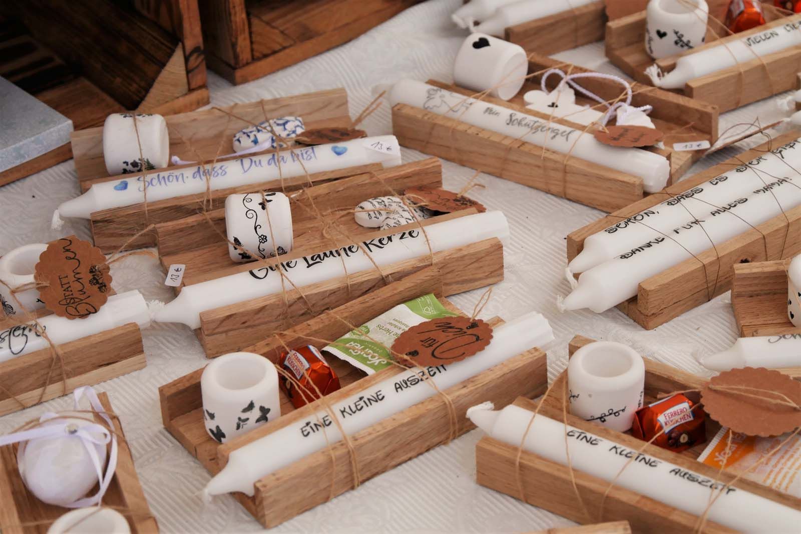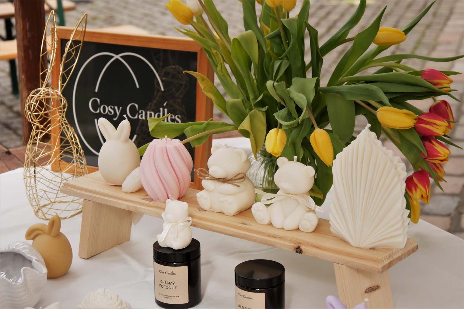 Von der klassischen Patchworkdecke über filigranen Schmuck, rustikale Keramik, handgefertigte Duftseifen oder künstlerische Grußkarten – vom Gemälde über Fotografien bis hin zu Skulpturen laden die Kreativen zum Stöbern und Staunen ein. Selbstverständlich werden bemalte Eier und andere Osterdekorationen nicht fehlen. Auch kulinarisch gibt es Besonderheiten wie Osterbrot, Eierlikör, Schokolade und Pralinen.